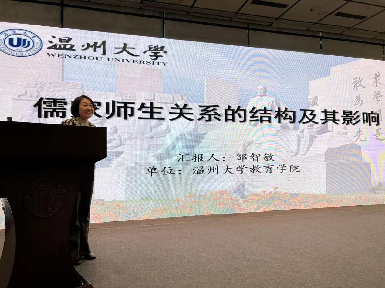 温州大学教育学院心理系教授邹智敏作“儒家师生关系的结构及其影响”的报告。