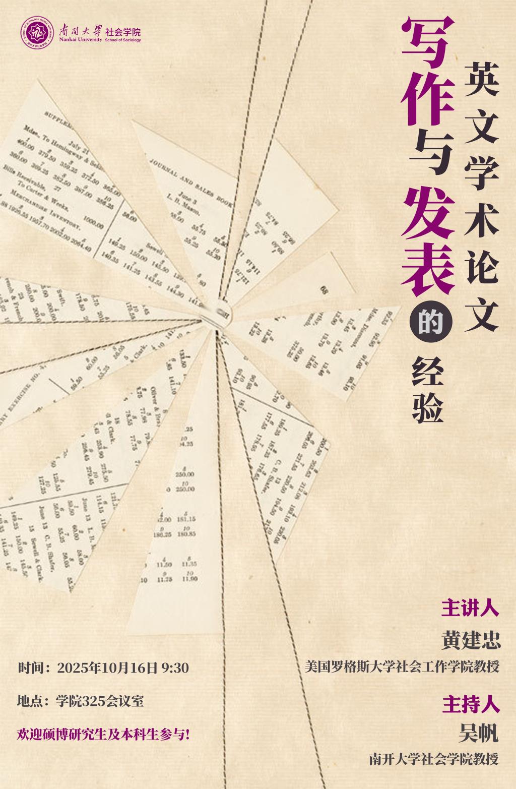 主讲嘉宾:黄建忠教授 罗格斯大学社会工作学院副院长