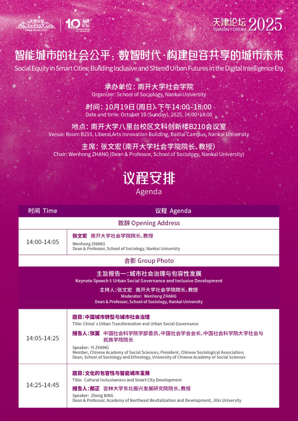 群学·资讯|天津论坛2025·平行论坛——智能城市的社会公平:数智时代·构建包容共享的城市末来